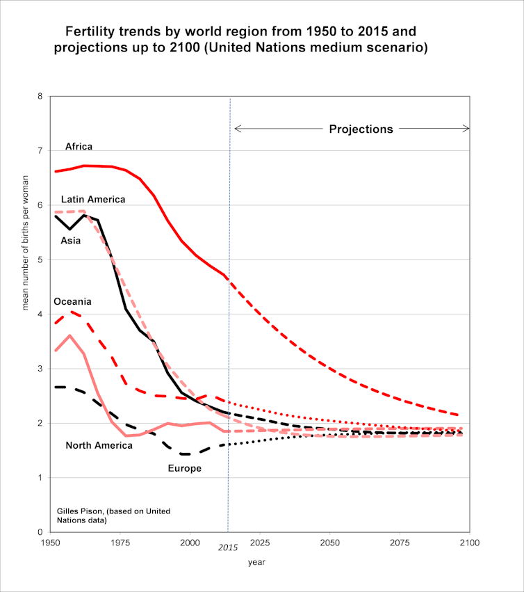 The high fertility rate is driving rapid population growth in Africa. Under the United Nations’ “medium scenario”, Africa’s population will be four times bigger than it currently is by the end of the century.